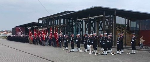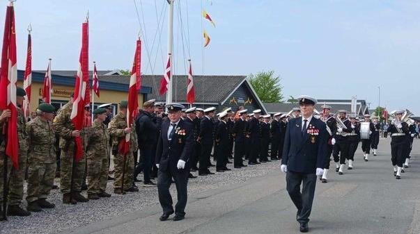Paraden tager opstillingen vinkelret fra museumsbygningen over mod Fregatten Jylland,